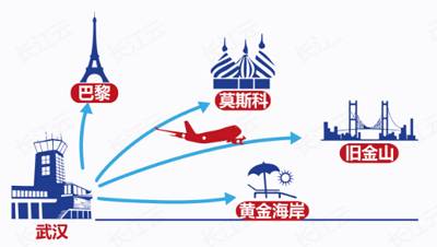 而從武漢天河機(jī)場出發(fā),不光能飛國內(nèi)主要城市,還能直航四大洲通達(dá)45個(gè)國際及地區(qū)城市。 什么巴黎、舊金山、莫斯科、澳大利亞隨便飛!