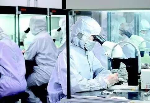 烽火科技員工在超凈間內(nèi)進(jìn)行芯片生產(chǎn)