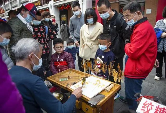 春節期間,在江岸吉慶街各式各樣的傳統民俗活動吸引不少市民前來游玩。熙來攘往的吉慶街里,除了不少父母帶著小朋友前來游玩感受體驗春節里的傳統民俗活動,也不乏情侶們踏春出游,感受濃濃春意。