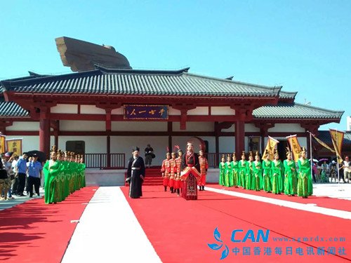 2016年千萬粉絲走進鄂旅投的媒體記者在關公銅像前合影留念