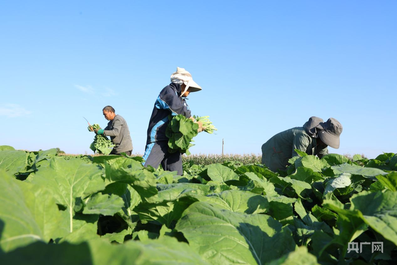 成片的油菜薹滿眼翠綠,村民們忙著采收(央廣網發 曹慧瓔 攝)