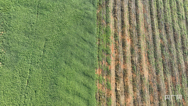 成熟的油菜與生長中的土地相映成趣(央廣網發 曹慧瓔 攝)