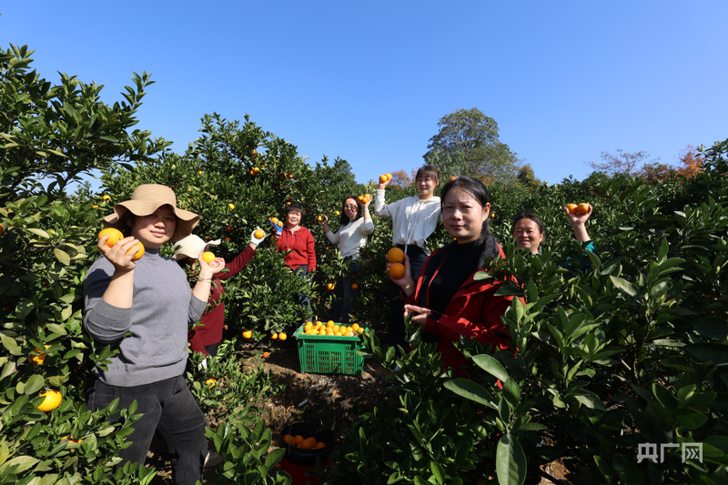 市民在雙峰縣梓門橋鎮(zhèn)的萬畝臍橙基地(央廣網(wǎng)發(fā) 張勇 攝)