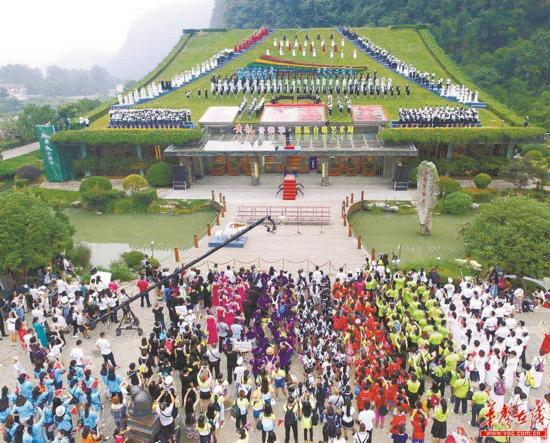 8月21日上午,2017黃龍音樂季·國際合唱藝術周在張家界黃龍洞哈利路亞音樂廳屋頂拉開帷幕,來自全國各地的112支合唱團參賽。