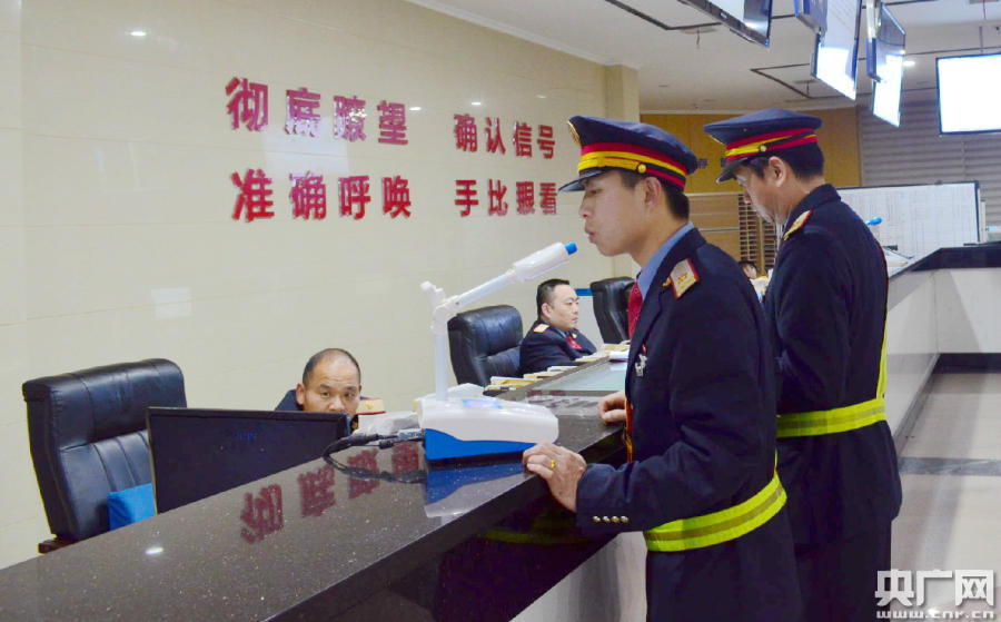 22點(diǎn)40分,睡足了四個(gè)多小時(shí)的譚住寶來(lái)到出乘室做出乘前的最好準(zhǔn)備:輸入指紋、酒精測(cè)試、核對(duì)揭示、IC卡反讀,整個(gè)作業(yè)過(guò)程譚住寶顯得特別認(rèn)真。 譚住寶做出乘前的準(zhǔn)備 -