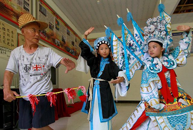 7月16日,花垣縣邊城鎮(zhèn)長老墳村漢劇傳習(xí)所,孩子們在楊勝先老人的指導(dǎo)下學(xué)習(xí)漢劇。該村在2016年成立“邊城漢劇傳習(xí)所”,由漢劇“非遺”傳承人楊勝先老人義務(wù)執(zhí)教,讓更多的年輕人學(xué)習(xí)、傳承漢劇。龍恩澤 攝
