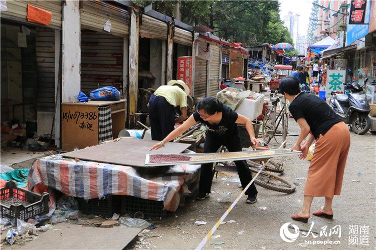市民們自覺搬運占道物品。 人民網長沙7月20日電 (萬麗君)今天上午,隨著城管人員揮錘,位于長沙市天心區赤嶺路街道南大橋社區的違規菜市場進入拆違階段,拆除面積近8000平米。在街道和社區的妥善安排下,原有菜市場商戶均已入駐到新農貿市場。 攤販占道、道路濕滑……存在于樓棟之間的湖南開關廠農貿市場曾讓小區居民苦不堪言。如今,市場被正式拆除,還小區居民一個整潔宜居環境,讓周圍的居民們點贊不斷。 菜市場環境臟亂差 引發市民擔憂 上午,記者在現場看到,在湖開小區的新2棟和新3棟之間,密密麻麻擺滿了攤位,僅有非常狹窄的通道供市民通行,爛菜葉、塑料袋等垃圾隨處可見,環境十分混亂。 “臟、亂、差。”在小區經營雜貨鋪的黃老板看著就擺在自己店鋪門口的小攤,連連搖頭,“道路坑坑洼洼,雨天濕滑,都不敢讓老人小孩出門,而且還存在很嚴重的消防隱患。” 據菜市場所屬南大橋社區的社區書記許艷介紹,開關廠農貿市場成立于2000年,除本身市場攤位,更有不少本地人在沿路臨時擺攤設點,導致沿線垃圾成堆, 衛生環境差, 管理難度大,居民投訴不斷。 針對居民所反映的問題,7月初,赤嶺路街道、南大橋社區聯合執法部門對違規菜市場下達了限期搬離通知。今天上午,消防、市容、城建、安監等執法部門對違規露天菜市場進行取締拆除。 原有商戶搬至商業街 升級改造還市民宜居環境 違規露天菜市場被拆,原有的70多名商戶如何安置?據了解,在街道和社區的協調下,幾乎所有商戶都已搬至地下的興威商業街,重新營業。商業街距離原有菜市場不過5分鐘步行路程,對于商戶經營并未造成太大影響。 在露天菜市場做了20多年蔬果生意的賀德意也搬到了地下農貿商場,地面干凈整潔、時常有熟客光顧,讓他很快適應了新的經營環境。 “今天的菜都賣的差不多了,都是熟客呢!” 賀德意說,搬下來之后,生意并沒有大幅減少,而且地下商場不僅環境好,社區還安裝了電風扇散熱,比在露天經營要相對舒服。 據興開鋪商業運營中心主管盛艷新介紹,目前已有78戶原有露天菜市場商戶搬入地下農貿商場。針對商戶變多的情況,運營中心將增加抽風系統,打通樓道,改善商戶的經營環境,讓居民買菜更加方便。 據悉,露天菜市場拆除之后,社區將會進行提質改造,破損的水泥路將被全部更換為瀝青路面,并且增加綠化,變成居民休閑娛樂的好去處。