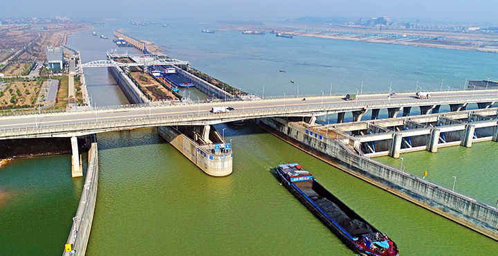 12月21日,湘江長沙綜合樞紐船閘檢修完畢,恢復雙向通航。湖南日報記者李健 通訊員胡富君 攝影報道