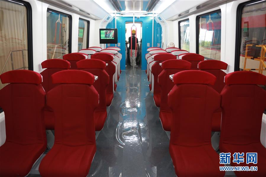 6月13日拍攝的中國首列2.0版商用磁浮列車內部。當日,擁有完全自主知識產權的中國首列2.0版商用磁浮列車在中車株洲電力機車有限公司下線,意味著中國磁浮列車技術取得新突破。 新華社發