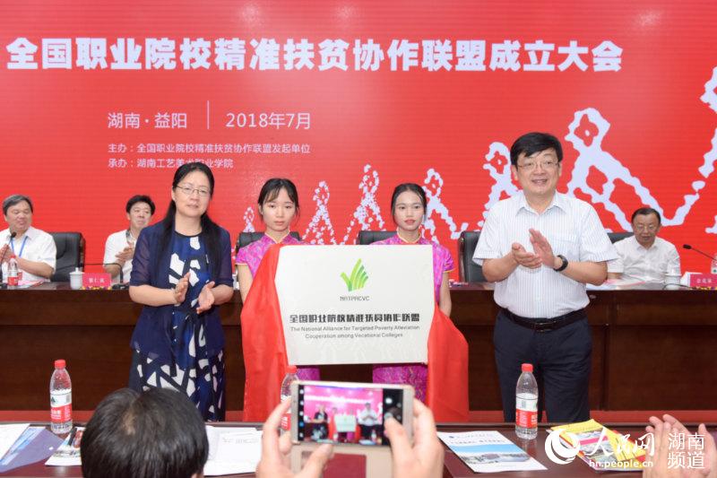 湖南省職業(yè)院校精準(zhǔn)扶貧專題展 人民網(wǎng)益陽7月28日電 28日,來自全國的65所職業(yè)院校齊聚湖南益陽,由湖南工藝美術(shù)職業(yè)學(xué)院牽頭發(fā)起成立“全國職業(yè)院校精準(zhǔn)扶貧協(xié)作聯(lián)盟”。聯(lián)盟將搭建起職業(yè)教育精準(zhǔn)扶貧合作交流平臺(tái),集聚全國職業(yè)院校力量,為服務(wù)國家脫貧攻堅(jiān)戰(zhàn)略,推進(jìn)職業(yè)教育精準(zhǔn)扶貧向縱深發(fā)展貢獻(xiàn)力量。 聯(lián)盟成立大會(huì)上,湖南工藝美術(shù)職業(yè)學(xué)院當(dāng)選為理事長單位,黨委書記余克泉當(dāng)選為理事長,北京電子科技職業(yè)學(xué)院、天津輕工職業(yè)技術(shù)學(xué)院等64所院校當(dāng)選為副理事長單位,湖南工藝美術(shù)職業(yè)學(xué)院副校長夏能權(quán)當(dāng)選為聯(lián)盟秘書長。大會(huì)審議通過了《全國職業(yè)院校精準(zhǔn)扶貧協(xié)作聯(lián)盟管理辦法》。 “這次精準(zhǔn)扶貧協(xié)作聯(lián)盟由65所職業(yè)院校共同發(fā)起,足以說明大家對(duì)職業(yè)教育精準(zhǔn)扶貧的高度關(guān)注!苯逃柯毘伤靖彼鹃L謝俐提出三點(diǎn)建議,一是提高政治站位,深刻認(rèn)識(shí)精準(zhǔn)扶貧的戰(zhàn)略意義;二是明確工作思路,科學(xué)謀劃職業(yè)教育精準(zhǔn)扶貧;三是堅(jiān)持公益導(dǎo)向,擔(dān)當(dāng)服務(wù)職業(yè)教育精準(zhǔn)扶貧使命。 湖南省教育廳副廳長應(yīng)若平表示,成立職業(yè)院校精準(zhǔn)扶貧協(xié)作聯(lián)盟,是全國職教系統(tǒng)貫徹落實(shí)黨中央打贏脫貧攻堅(jiān)戰(zhàn)略部署的具體行動(dòng),選擇在湖南成立協(xié)作聯(lián)盟,意義深遠(yuǎn)。 湖南工藝美術(shù)職業(yè)學(xué)院黨委書記余克泉提出,聯(lián)盟的宗旨就是打造全國職業(yè)院校精準(zhǔn)扶貧合作平臺(tái),采取“造血式”扶貧方式,幫扶更多貧困人口脫貧致富,為打贏脫貧攻堅(jiān)戰(zhàn)做出應(yīng)有的貢獻(xiàn)。 在隨后的職業(yè)教育精準(zhǔn)扶貧研討會(huì)上,湖南大學(xué)脫貧減貧與鄉(xiāng)村振興智庫執(zhí)行主任李飛龍博士,做題為《發(fā)揮高校優(yōu)勢聚焦精準(zhǔn) 扎實(shí)推動(dòng)定點(diǎn)扶貧工作》的專題講座,介紹了湖南大學(xué)教育扶貧、科技扶貧、智力扶貧等主要做法與成效,用親身經(jīng)歷傳經(jīng)送寶,讓與會(huì)人員對(duì)精準(zhǔn)扶貧有了更全面、深刻的認(rèn)識(shí)。同時(shí),湖南工藝美術(shù)職業(yè)學(xué)院、銅仁職業(yè)技術(shù)學(xué)院等8所院校分別進(jìn)行交流發(fā)言。(何萌)