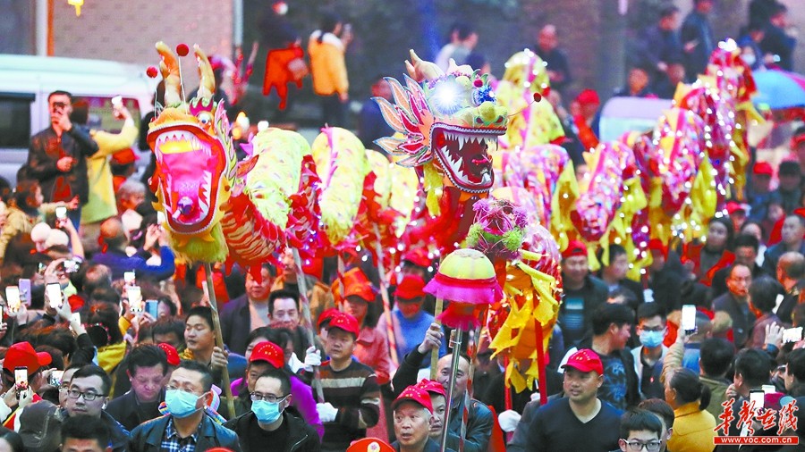 3月13日 衡陽縣界牌鎮,居民舞龍游街慶!盎馃艄潯。當天是農歷二月初七,界牌鎮舉行一年一度的“火燈節”民俗活動,祈求風調雨順、國泰民安。