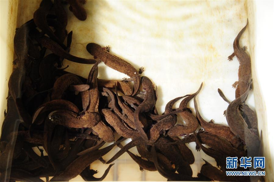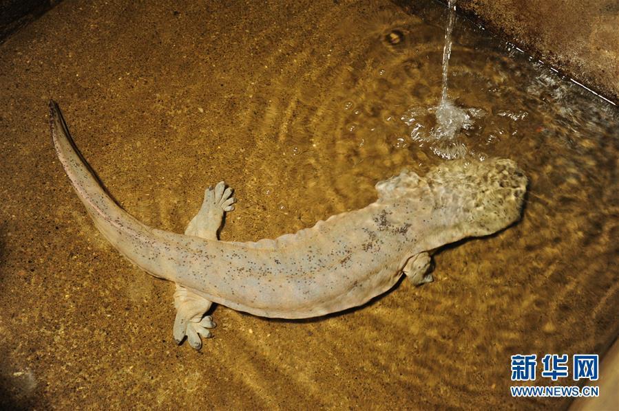 3月16日在湖南省大鯢救護中心拍攝的在野外獲救的一尾娃娃魚。 新華社記者 明星 攝 圖片來源:新華網