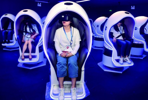 5月18日晚,市民在體驗VR沉浸式“帛畫奇境”。當天是國際博物館日,湖南省博物館舉行“博物館之夜”活動,通過現(xiàn)代技術創(chuàng)新與歷史文物的融合,讓市民和游客體驗一場奇妙的文化之旅。湖南日報記者 郭立亮 攝