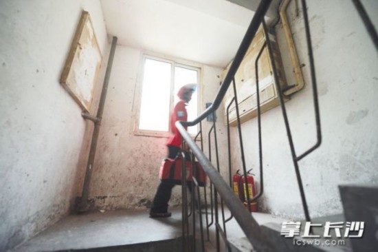 遇到沒有電梯的老式樓房,王春芳往往都是兩層階梯做一步跨上去,她笑著跟記者說,這樣可以節省不少時間