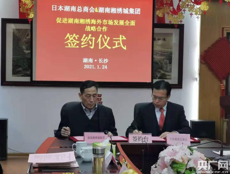 1月24日,日本湖南總商會與湖南湘繡城集團在長沙簽定湖南湘繡海外市場發展全面戰略合作協議。協議規定,雙方攜手合作共同打造跨境電商平臺,雙方聯合在日本共同創建跨境海外倉,擴大雙方跨境電商國際市場的進出口業務。
