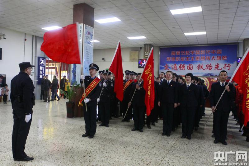 衡陽站派出所教導員胡宇輝組織青年值勤隊和黨員先鋒隊民警莊嚴宣誓“忠誠盡責、捍衛春運;決戰用我,用我必勝,誓保平安”,設立青年執勤隊執勤專崗,制作春運宣傳欄,組織青年民警和黨員民警的先鋒作用,為旅客普及安檢查危知識、向旅客贈送“福”字等。