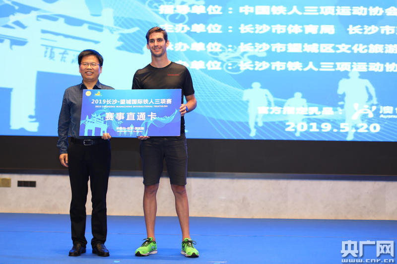 新聞發布會現場邀請了來自澳大利亞的鐵三世界冠軍米歇爾·保羅·羅賓斯(央廣網發 組委會供圖)