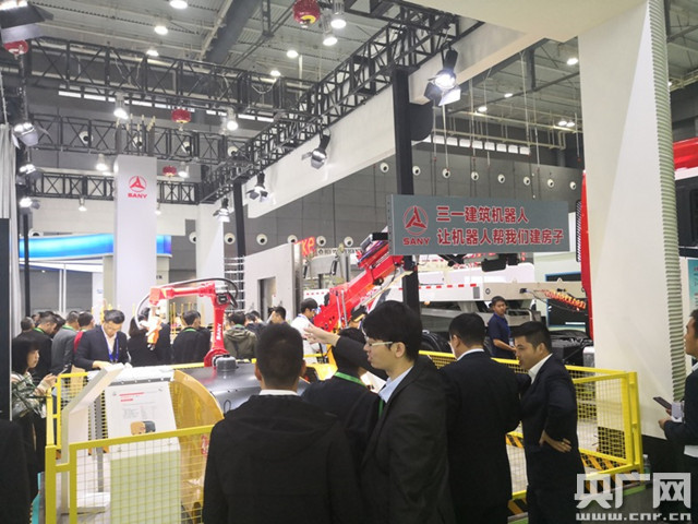 三一筑工展出的建筑機(jī)器人吸引了不少專業(yè)觀眾(央廣網(wǎng)記者 姜文婧 攝)