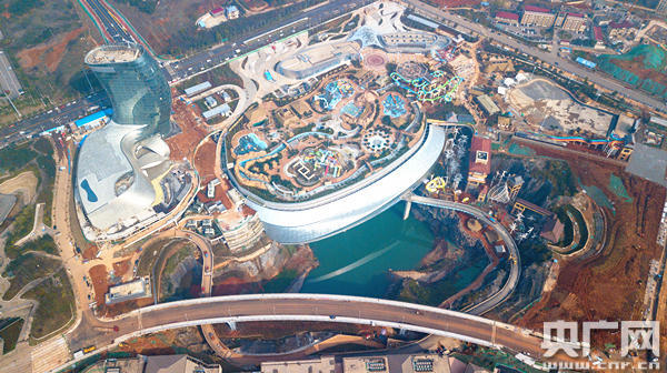 湘江歡樂城“鑲嵌”在一個巨大的廢棄礦坑上(央廣網發(fā) 中建五局供圖)