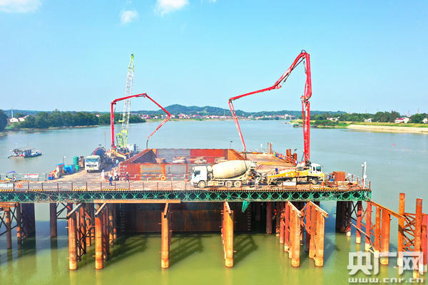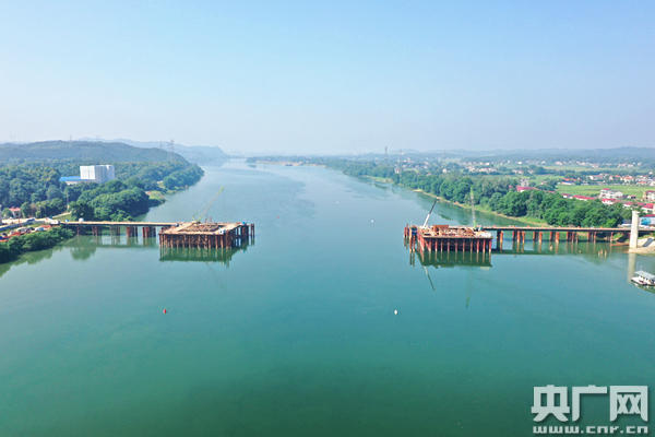 建設(shè)中的資水河特大橋(央廣網(wǎng)發(fā) 中鐵五局供圖)