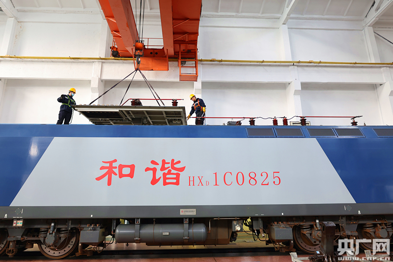 株洲檢修職工在中修庫進(jìn)行機車吊頂棚作業(yè)(央廣網(wǎng)發(fā) 通訊員許彬 攝)