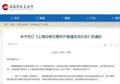 上交所修改滬港通業(yè)務(wù)規(guī)則配合香港聯(lián)交所增設(shè)交易時段