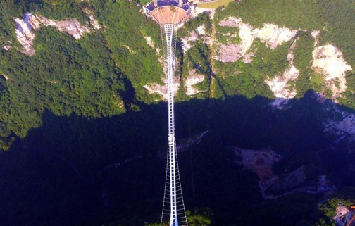 選址在張家界大峽谷風(fēng)景區(qū)栗樹(shù)埡和吳王坡區(qū)域內(nèi)的這座玻璃橋長(zhǎng)430米、寬6米,橋面鋪設(shè)了99塊三層疊加而成的鋼化玻璃,厚度僅0.6米,創(chuàng)造了世界最長(zhǎng)、世界最高、世界首座玻璃作為主受力結(jié)構(gòu)的大型橋梁等多項(xiàng)“世界之最”。