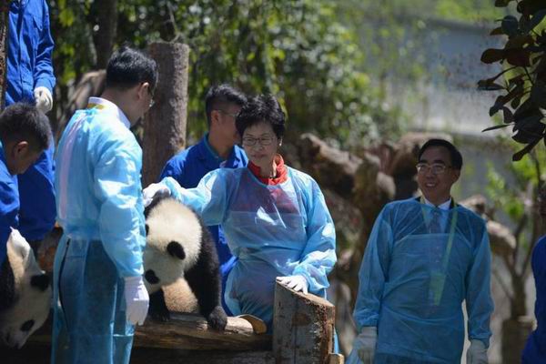 (圖為:5月11日香港政務(wù)司司長(zhǎng)林鄭月娥率領(lǐng)香港特區(qū)代表團(tuán)訪問四川)