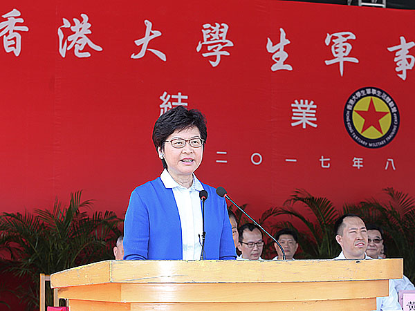 香港特別行政區(qū)行政長官林鄭月娥在典禮上表示,體驗(yàn)營為香港大學(xué)生提供一個(gè)寶貴的學(xué)習(xí)機(jī)會,透過嚴(yán)格的軍事訓(xùn)練,同學(xué)們除了學(xué)會軍隊(duì)的基本知識和技能,體驗(yàn)軍人嚴(yán)格和規(guī)律的生活外,也能磨練出堅(jiān)強(qiáng)的意志,培養(yǎng)了自律、服從、團(tuán)結(jié)和刻苦耐勞的精神,日后為建設(shè)香港、報(bào)效國家作出貢獻(xiàn)。