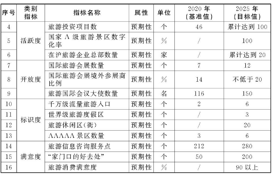 “十四五”時(shí)期,上海將建設(shè)都市旅游首選城市,建設(shè)國際旅游開放樞紐,建設(shè)亞太旅游投資門戶,建設(shè)國際數(shù)字旅游之都。力爭到“十四五”期末,上海實(shí)現(xiàn)旅游年總收入由2020年的3139.78億元增加到7000億元,占全市GDP比重達(dá)到6%。實(shí)現(xiàn)旅游重大投資項(xiàng)目增加至100個(gè),千萬級(jí)流量旅游入口增加至6個(gè),國家5A級(jí)旅游景區(qū)增加至6個(gè),家門口好去處建成200個(gè)。