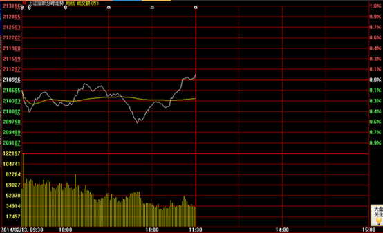 午盤:滬指微漲守2100點 創業板跌1.21%