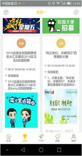 姬鯤:我們只做了一個內容,就是大學生生活的信息,就好像一本雜志,里面有各種各樣故事,各種各樣段子。我們希望給學生提供的服務是單純的、純粹的、專注的服務,我們下一步會有戰略級的產品功能上線。我們在線下做了很重的布局,為開學打一場很刺激的戰役做了一場準備,開學希望徐總關注我們的產品。