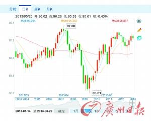 近期國際油價走勢震蕩,一方面近期美國經(jīng)濟(jì)數(shù)據(jù)與美國股市持續(xù)上漲給國際油價帶來支撐,上周五美國公布5月消費者信心指數(shù)遠(yuǎn)超市場預(yù)期;另一方面,美元不斷走強(qiáng)也給整個大宗商品市場帶來壓力。NYMEX原油期貨自進(jìn)入5月份以來在95美元/桶上下持續(xù)震蕩;布倫特原油期貨則在100~105美元之間反復(fù)震蕩。