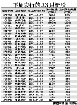 IPO重啟后,A股市場迎來了有史以來最密集的新股發(fā)行潮,獲得證監(jiān)會放行的新股共有50只,這些新股均在1月8日至21日的10個交易日里完成申購,平均每天5只新股發(fā)行。本周,剔除暫緩發(fā)行的奧賽康外,申購的新股共有7只,而這僅是本輪IPO重啟后的“熱身”。下周A股市場將迎來IPO史上最大發(fā)行潮,33只新股洶涌而至。1月17日當天,更有9只新股密集發(fā)行;在17日發(fā)行的9只新股中,本輪發(fā)行潮中“塊頭”最大、募集資金最多的陜西煤業(yè)也將亮相,該公司一家就要募集上百億資金。