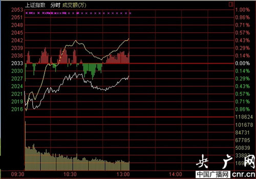 央廣網財經北京2月7日消息 截至上午11點30分,滬指報2028.35點,下跌4.73點,跌幅0.23%,成交356.18億元;深成指報7513.42點,下跌59.21點,跌幅0.78%,成交608.54億元;創業板指報1516.07點,上漲20.09點,漲幅1.34%,成交196.22億元。