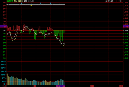 新華網消息 周五兩市低開,后在石化雙雄帶動下滬指一路飄紅,隨后中國石化回調,滬指飄綠,圍繞2050點多空雙方展開火拼。深成指開盤后振蕩走高,網絡信息安全概念出現大幅上漲,多只個股一度漲停。截至午盤,滬指報2027.88點,下跌19.47點,跌幅0.95%,成交499.74億元;深成指報7219.30點,上漲30.56點,漲幅0.43%,成交756.62億元;創業板指報1397.11點,下跌17.55點,漲幅1.24%,成交170.23億元。