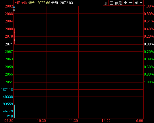 新華網(wǎng)消息 今日A股小幅高開,滬指報2073.30點,上漲1.82點,漲幅0.09%,成交6.86億元;深成指報7352.72點,上漲5.61點,漲幅0.08%,成交9.34億元;創(chuàng)業(yè)板指報1467.06點,上漲6.61點,漲幅0.45%,成交1.96億元。