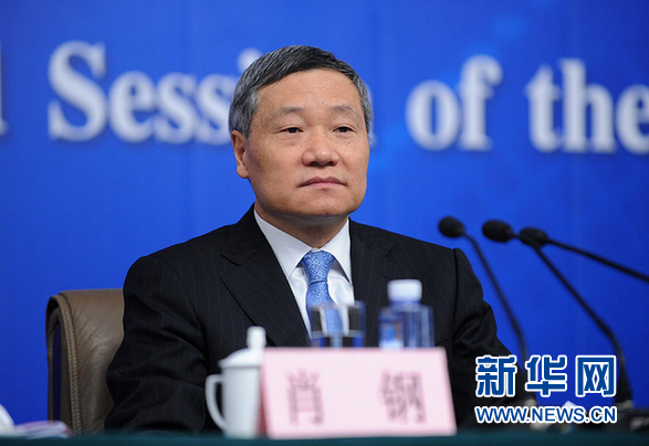 十二屆全國人大二次會議新聞中心于3月11日上午9時在梅地亞中心多功能廳舉行記者會,邀請中國人民銀行行長周小川等五位嘉賓就“金融改革與發展”的相關問題回答中外記者的提問。圖為證監會主席肖鋼。