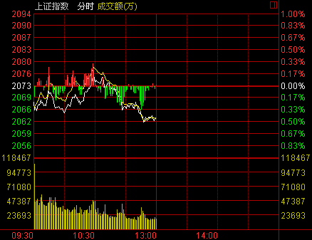 截至午盤,滬指報(bào)2063.57點(diǎn),下跌9.26點(diǎn),跌幅0.45%,成交366.68億元;深成指報(bào)7412.57點(diǎn),上漲21.35點(diǎn),漲幅0.29%,成交423.63億元;創(chuàng)業(yè)板指報(bào)1323.26點(diǎn),下跌12.93點(diǎn),跌幅0.97%,成交88.55億元。