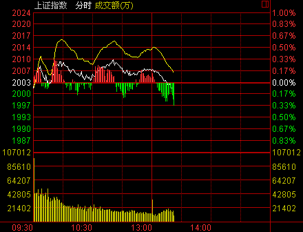 滬指午后跌破2000點 銀行、石油等權重飄綠