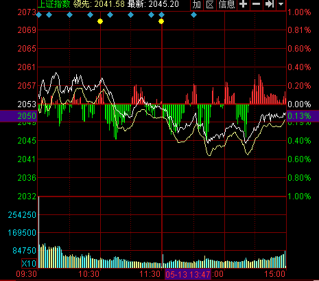 央廣網財經北京5月13日消息 據經濟之聲《交易實況》報道,今日滬深兩市雙雙高開,午后震蕩下行,滬深兩指雙雙翻綠,兩市成交量較昨日較少。