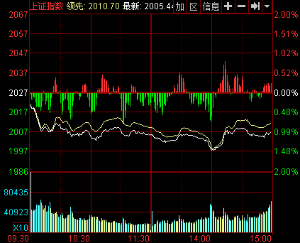今日兩市小幅低開,維持弱勢調(diào)整態(tài)勢,盤中網(wǎng)絡(luò)彩票、互聯(lián)網(wǎng)金融等出現(xiàn)護盤力量,但抵擋不住券商、白酒、煤炭等集體砸盤,滬深股指出現(xiàn)快速跳水。午后滬指低位震蕩下行,下午2時左右跌破2000點,最低下探至1996.02點,券商、保險、煤炭等跌幅擴大,滬指跌逾1%,成交量大幅萎縮,市場信心低迷。