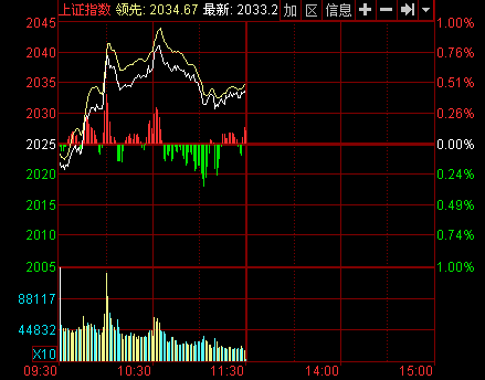 截至午盤,滬指報2033.25點,上漲8.30點,漲幅0.41%,成交335.71億元;深成指報7246.03點,上漲41.39點,漲幅0.57%,成交491.50億元;創業板指報1280.80點,上漲23.00點,漲幅1.83%,成交136.80億元。