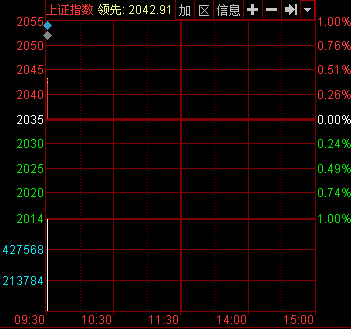 新華網消息 今日早盤滬深兩市雙雙小幅高開,滬指報2042.03點,上漲7.46點,漲幅0.37%,成交5.00億元;深成指報7289.63點,上漲48.71點,漲幅0.67%,成交10.64億元;創業板指報1301.87點,上漲5.87點,漲幅0.45%,成交2.09億元。
