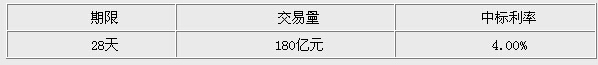 中國經濟網北京6月24日訊 據央行網站消息,央行今日開展180億元28天期限正回購操作,中標率為4%。具體情況如下: