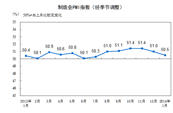 2014年1月中國(guó)制造業(yè)采購(gòu)經(jīng)理指數(shù)為50.5%