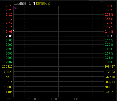 新華網消息 今日滬深兩市高開,滬指報2108.71點,上漲3.65點,漲幅0.17%,成交5.98億元;深成指報7528.34點,上漲24.94點,漲幅0.33%,成交6.82億元;創業板指報1271.43點,下跌0.45點,跌幅0.04%,成交8949萬元。