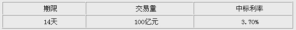 中國經濟網北京8月21日訊(記者 韋偉)今日,央行以利率招標方式開展為期14天100億正回購操作,中標利率為3.70%。