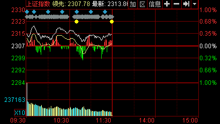 新華網(wǎng)消息 5日兩市早盤雙雙跳空高開,券商、保險、有色、煤炭等權(quán)重股活躍,盤中再創(chuàng)新高,隨后回落。滬指站穩(wěn)2310點,盤中窄幅震蕩,深成指一度翻綠,創(chuàng)業(yè)板表現(xiàn)一般,震蕩下挫。截至午盤,滬指報2313.86點,上漲7點,漲幅0.3%,成交1063億元;深成指報8179.28點,上漲2.71點,漲幅0.03%,成交1216億元;創(chuàng)業(yè)板指報1484.75點,下跌10.76點,跌幅0.72%,成交234.9億元。