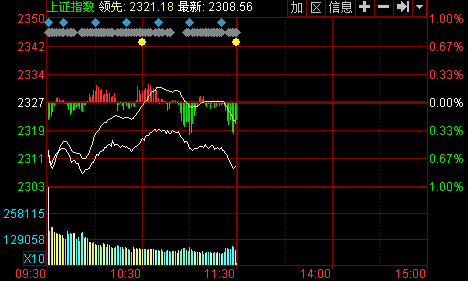 新華網消息 10日兩市雙雙低開,沖高受阻后回落跌破5日均線,創業板走出逆勢上漲行情,盤中站上1500點。金融、煤炭等權重股跌幅居前。截至午盤,滬指報2308.56點,下跌17.97點,跌幅0.77%,成交930億元;深成指報8127.86點,下跌73.65點,跌幅0.9%,成交1147億元;創業板指數報1495.01點,上漲0.99點,漲幅0.07%,成交231.5億元。